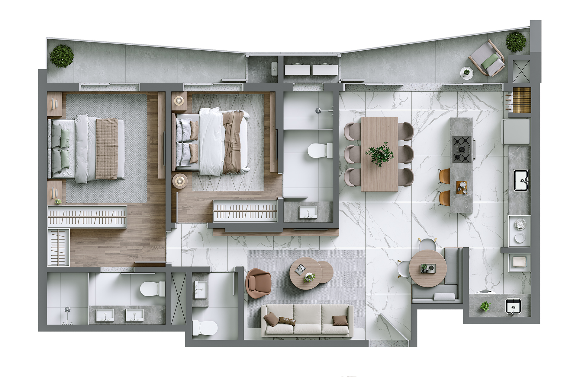 2 a 4 suítes